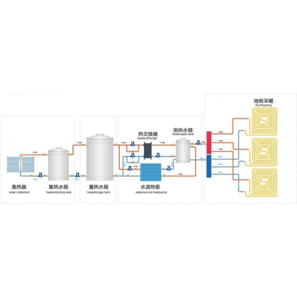 In large-scale projects, we adapt solar collectors, matched with storage tank, auxiliary heating system, computerized controller and pipe cycling system. it is an economical option for hotel, school, hospital and swimming pool. Their principle as follow: